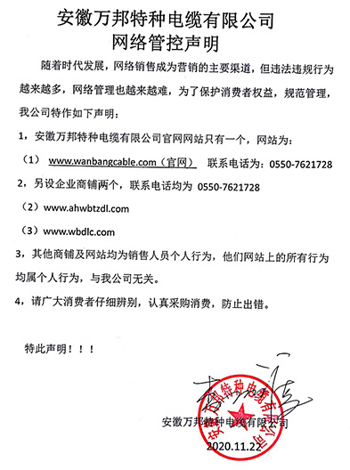 鄭重聲明:安徽萬邦特種電纜有限公司官方網站為:www_wanbangcable_com.zhiyulong.cn,除此之外無任何子網站或合作網站,其余均為假冒偽劣。電話:0550-7621728 13485756353 地 址:安徽省天長市滁州高新技術產業開發區經四路29號